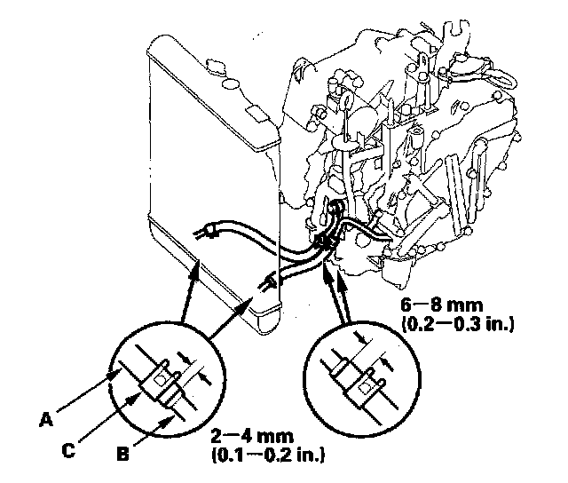 Secure the ATF cooler hoses with the clips (C) in the position shown.