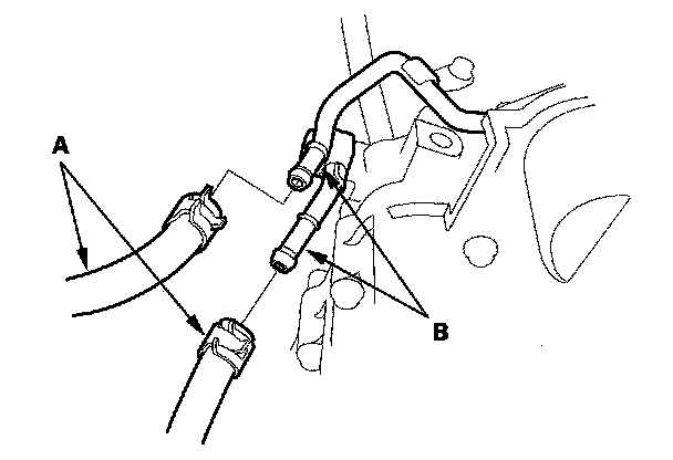 16. Connect the ATF cooler hoses (A) to the ATF cooler lines (B).
