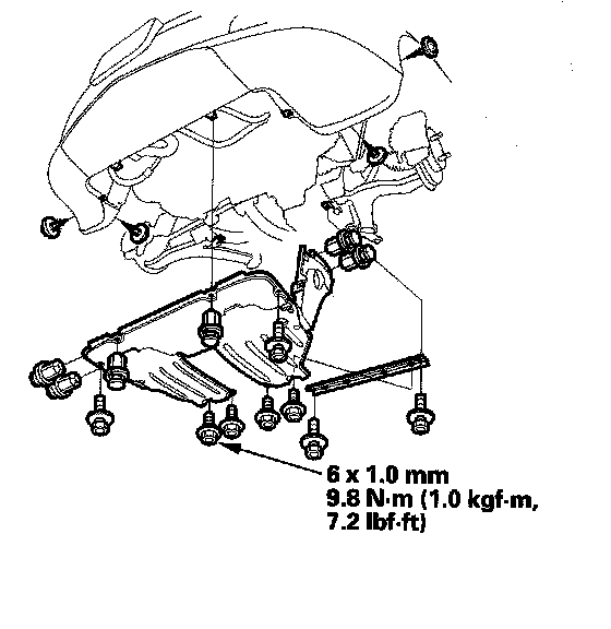 9. Install the exhaust manifold bracket (A) and heat shield (B).