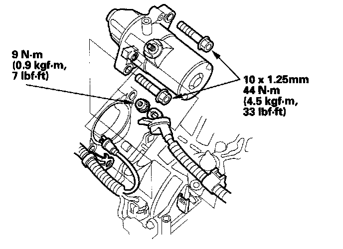 11. Install the transmission ground cable (D) on the transmission mount bracket.