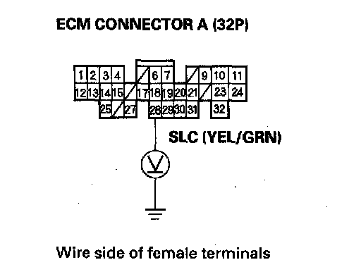4. Measure the voltage between ECM connector terminal A28 and body ground.