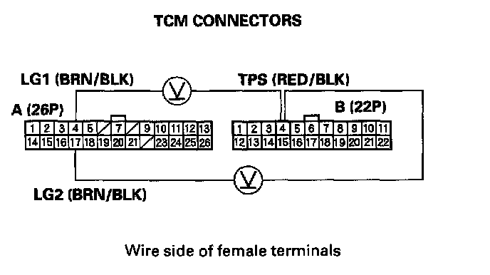 5. Disconnect TCM connectors A (26P) and B (22P).
