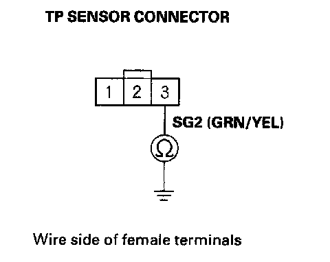 16. Check for continuity between TP sensor connector terminal No. 3 and body ground.