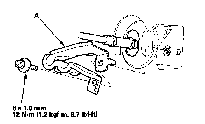 5. Remove the shift cable bracket (A) in the cabin, under the dash.
