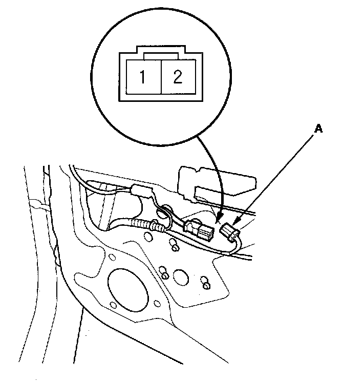 2. Disconnect the 2P connector (A) from the passenger's power window motor.