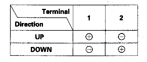 3. Check window motor operation by connecting power and ground according to the table. When the motor stops running, disconnect one lead immediately.