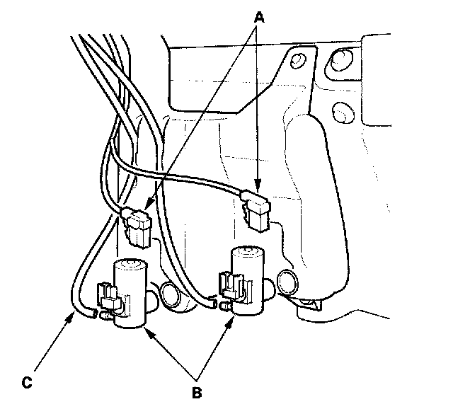3. Disconnect the washer tubes (C) from the washer motors.