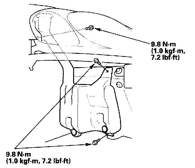 4. Remove the three mounting bolts and washer reservoir.