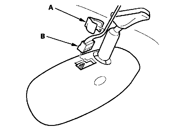 2. Remove the harness holder (A), then disconnect the connector (B).
