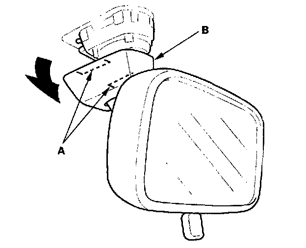 1. Release the hooks (A), then pull the mirror base cover (B) down.