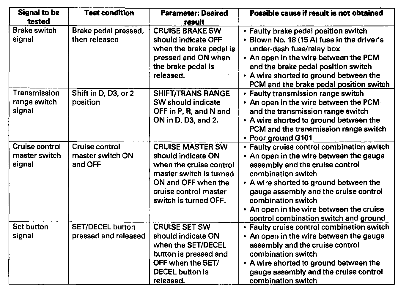 5. Do the tests while monitoring parameters in the PGM-FI DATA LIST with the HDS.