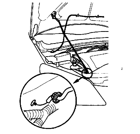 1. Fix the engine hood in a vertical position by using a support rod as shown.