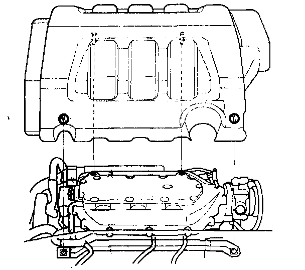 69. Slowly lower the engine/transmission assembly about 150 mm (6 inch). Check once again that all hoses and wires are disconnected from the engine/ transmission assembly.
