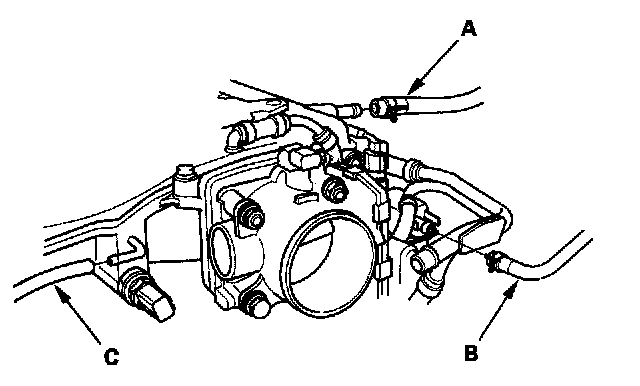 18. Remove the vacuum hose (C) (J35A6 engine).