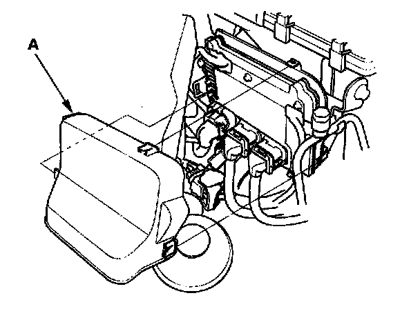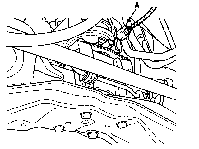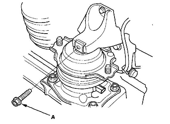 44. J35A7 engine: Disconnect the rear engine mount control solenoid valve connector (A).