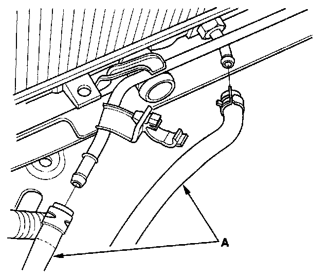55. Remove the ATF cooler hoses (A), then plug the ATF cooler hoses and lines.