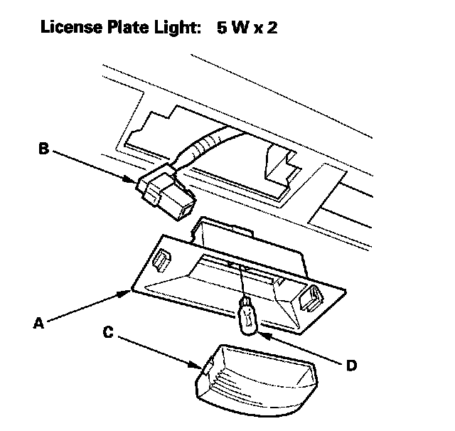 License Plate Light Replacement1. Remove the license plate light (A), and disconnect the 2P connector (B) from the light.