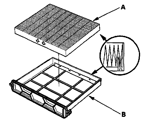 3. Remove the filter (A) from the housing (B), and replace the filter.