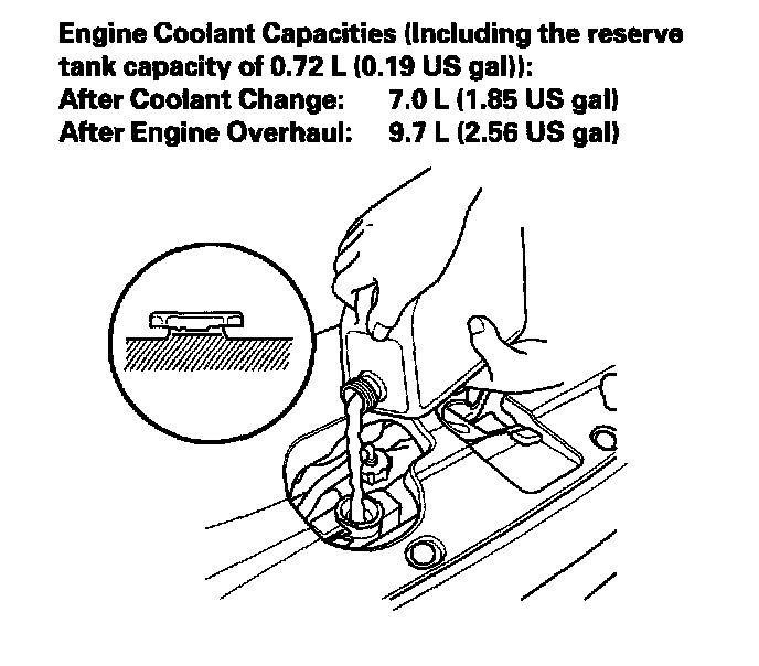 17. Check the level in the radiator, and add Honda All Season Antifreeze/Coolant Type 2, if needed.