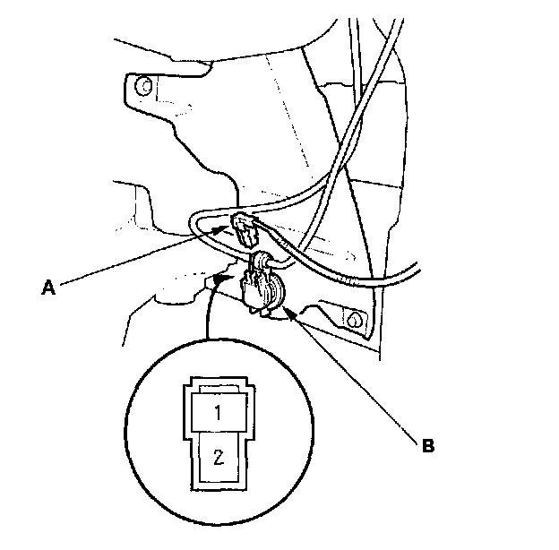2. Disconnect the 2P connector (A) from the washer motor (B).