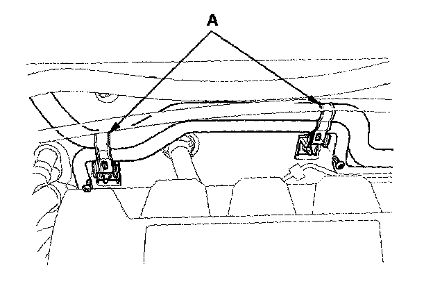 10. Install the screws into the two A/C line clamps (A) along the engine compartment bulkhead.
