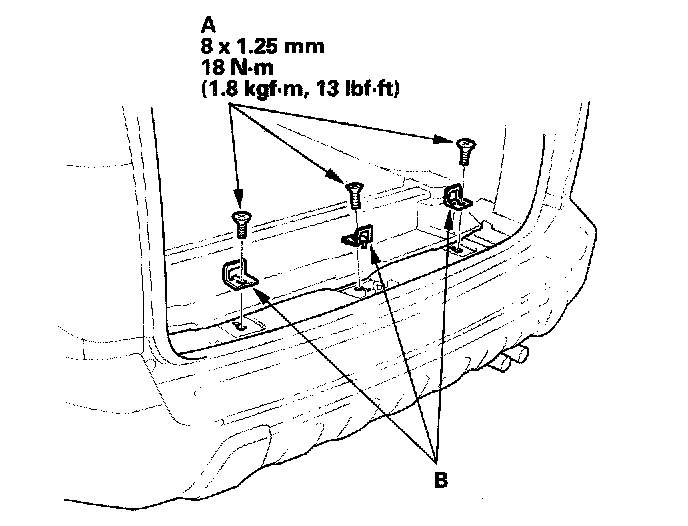 2. Remove the screws (A), and remove the third row child seat tether anchors (B).