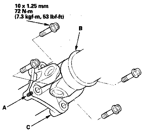 5. Make a reference mark (A) across the propeller shaft (B) and the transfer companion flange (C).