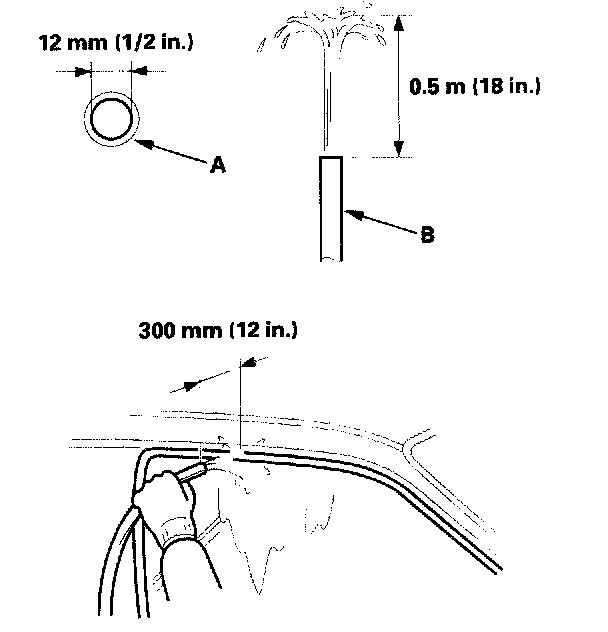- Use a 12 mm (1/2 in) diameter hose (A).