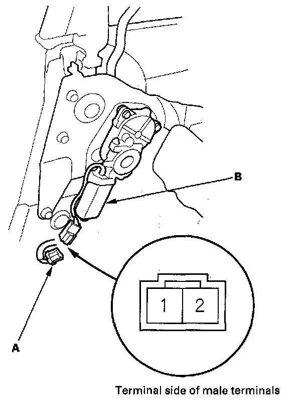 2. Disconnect the 2P connector (A) from the left top motor (B).