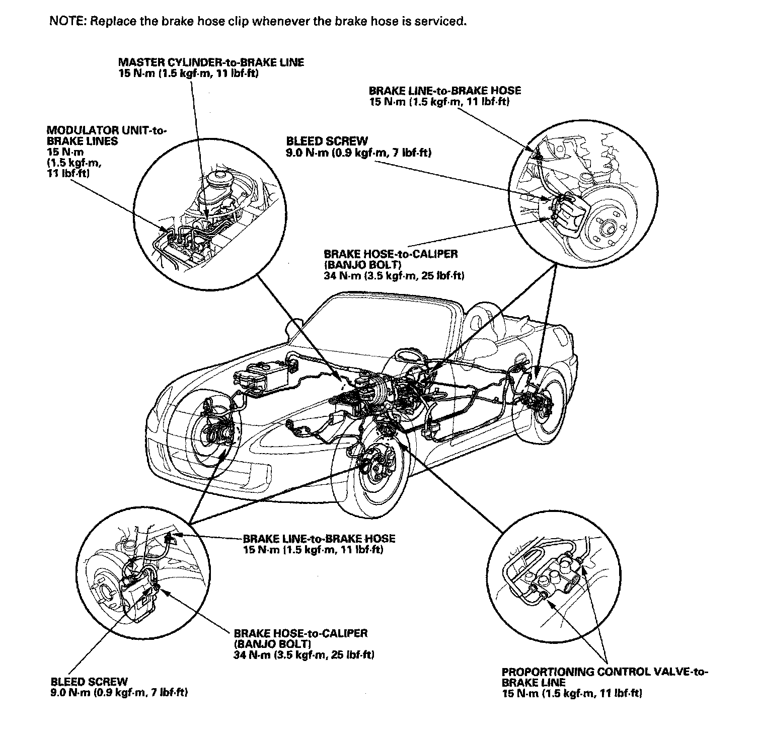 NOTE: Replace the brake hose clip whenever the brake hose is serviced.