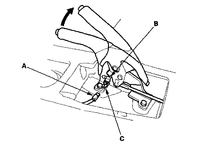 Parking Brake Switch Test1. Remove the center console and disconnect the connector (A) from the parking brake switch (B).