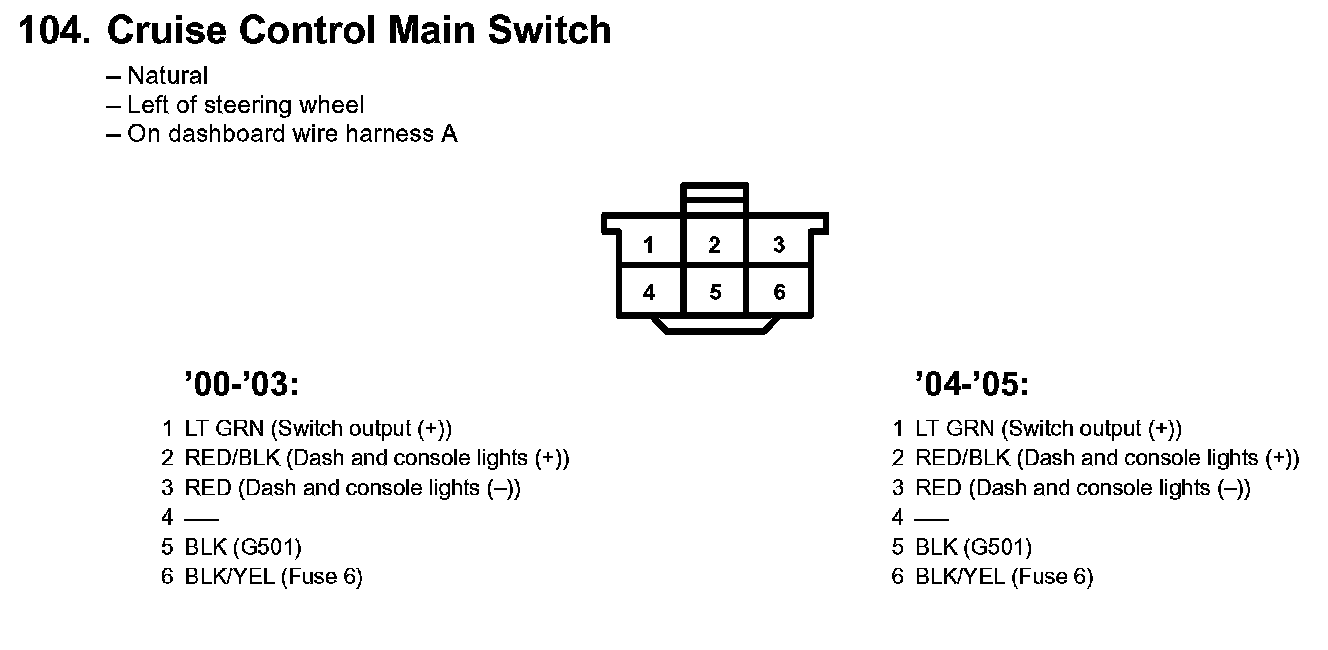 104. Cruise Control Main Switch: