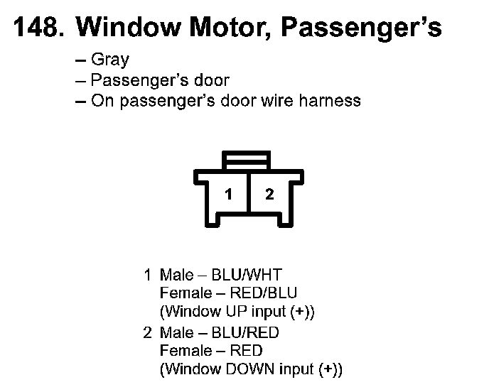 148. Window Motor, Passenger's: