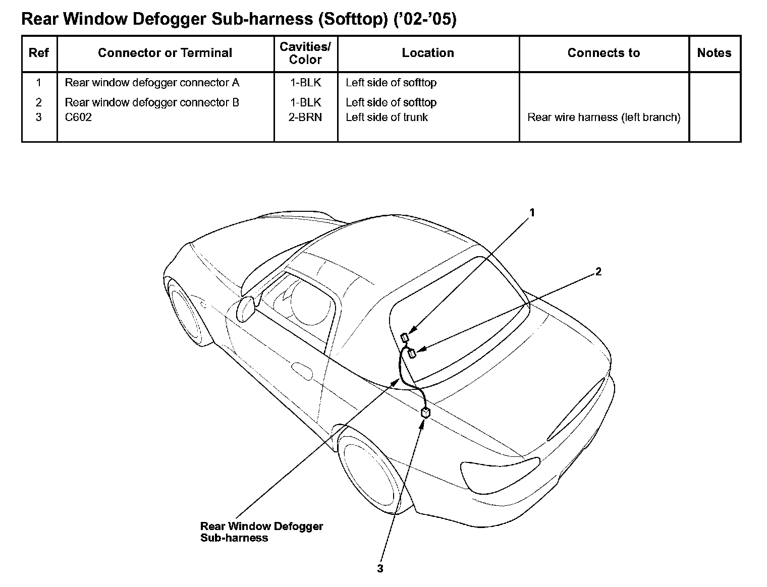 Rear Window Defogger Sub-harness (Softtop) ('02-'05):