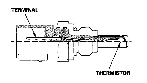 The ECT sensor is a temperature dependent resistor (thermistor). The resistance of the thermistor decreases as the engine coolant temperature increases.