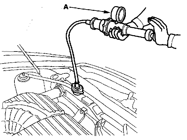 2. Attach the pressure tester (A)(commercially available) to the radiator and apply a pressure of 93 - 123 kPa (0.95 - 1.25 kgf/cm2, 14 - 18 psi).