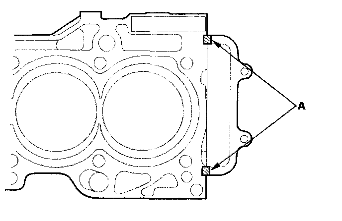 3. Apply liquid gasket, P/N 08717-0004, 08718-0001, 08718-0003, or 08718-0009, to the shaded areas (A) of the cylinder head gasket mating surface of the block and chain case.
