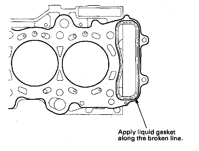 5. Apply liquid gasket, P/N 08717-0004, 08718-0001, 08718-0003, or 08718-0009, to the cylinder head mating surface of the block and chain case within 5 mm of the edge of the cylinder head gasket.