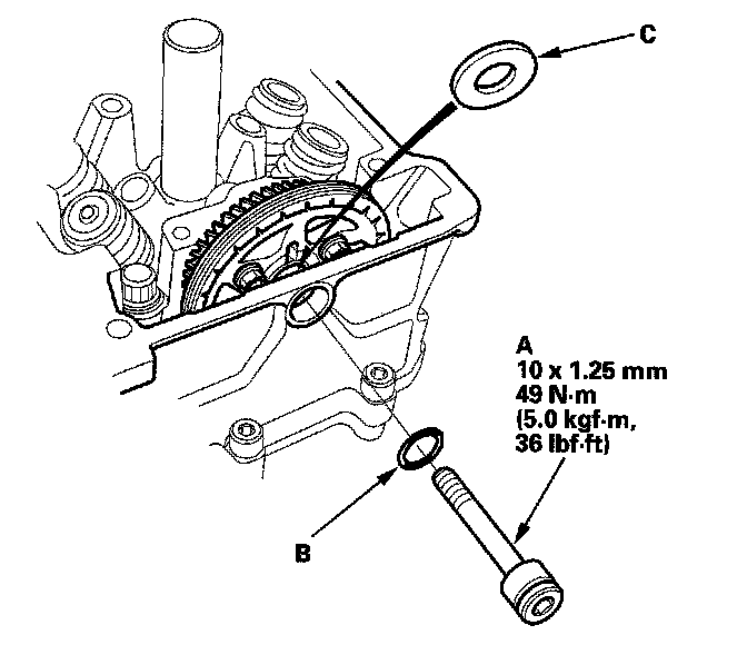 17. Install the washer (C) on the idler gear, and tighten the center bolt.
