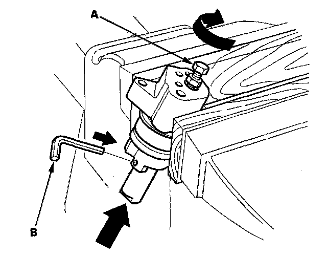 19. Turn the 5 x 0.8 mm bolt (A) clockwise to compress the bottom of the auto-tensioner, then insert the set pin (B), P/N 14811-PCX-005.