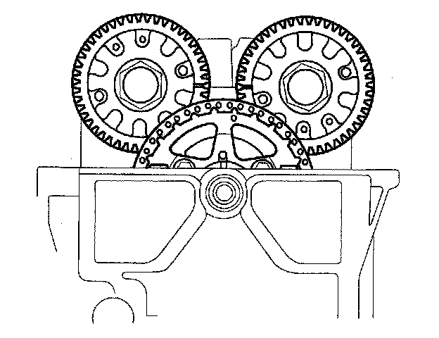 28. Make sure the camshaft gears are at TDC.