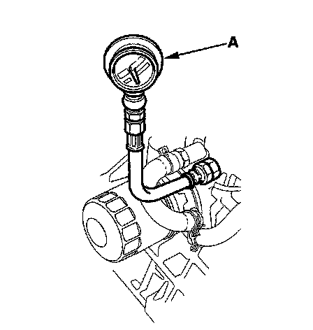 2. Remove the engine oil pressure switch, and install an oil pressure gauge (A).