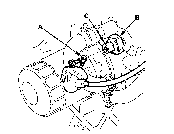 2. Check for continuity between the positive terminal (C) and the engine (ground). There should be continuity with the engine stopped. There should be no continuity with the engine running.
