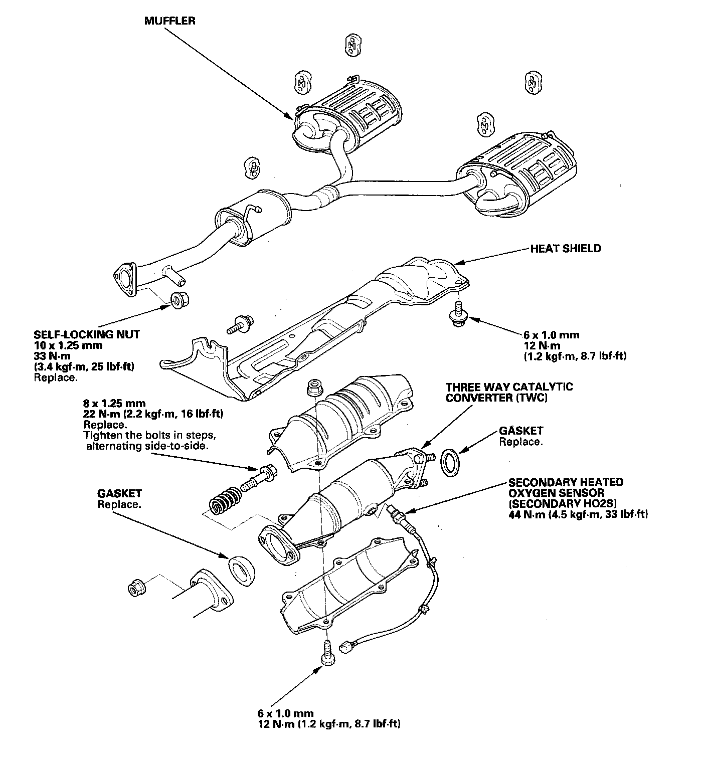 Use new gaskets and self-locking nuts when reassembling.