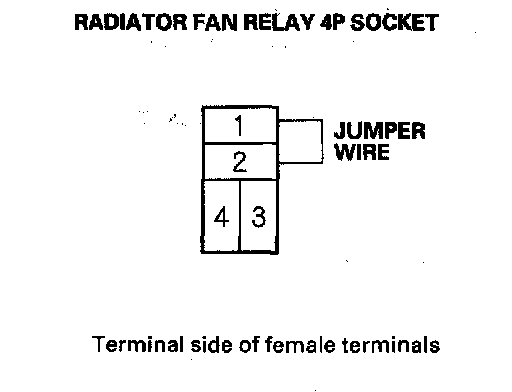 4. Connect the No. 1 and No. 2 terminals of the radiator fan relay 4P socket with a jumper wire.