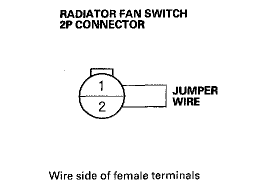 11. Connect the No. 1 and No. 2 terminals, of the radiator fan switch 2P connector with a jumper wire.