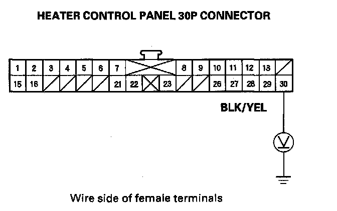 4. Measure the voltage between the No.30 terminal of the heater control panel 30P connector and body ground.