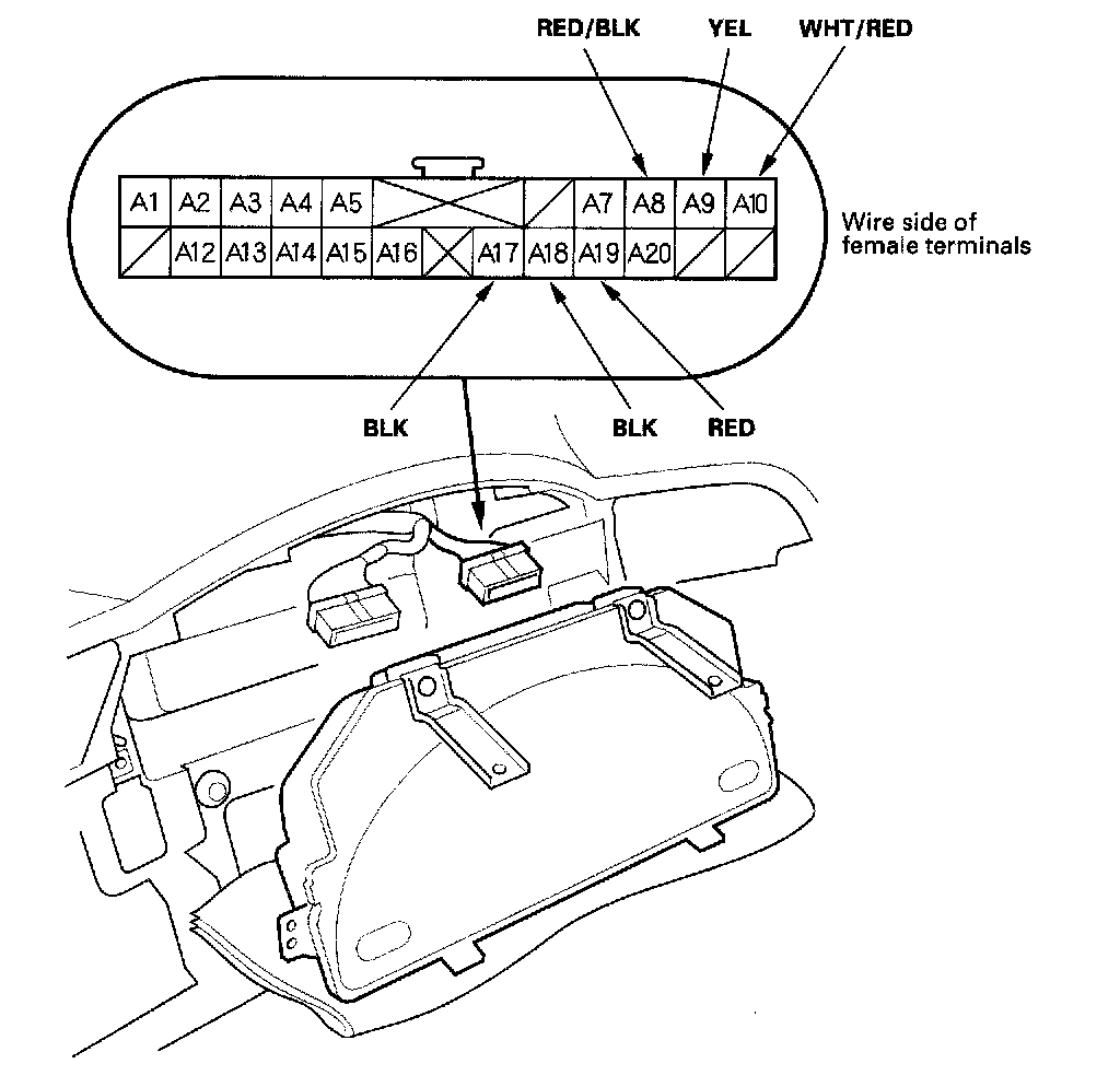 2. Inspect the gauge assembly connector A (22P) terminals to be sure they are all making good contact.