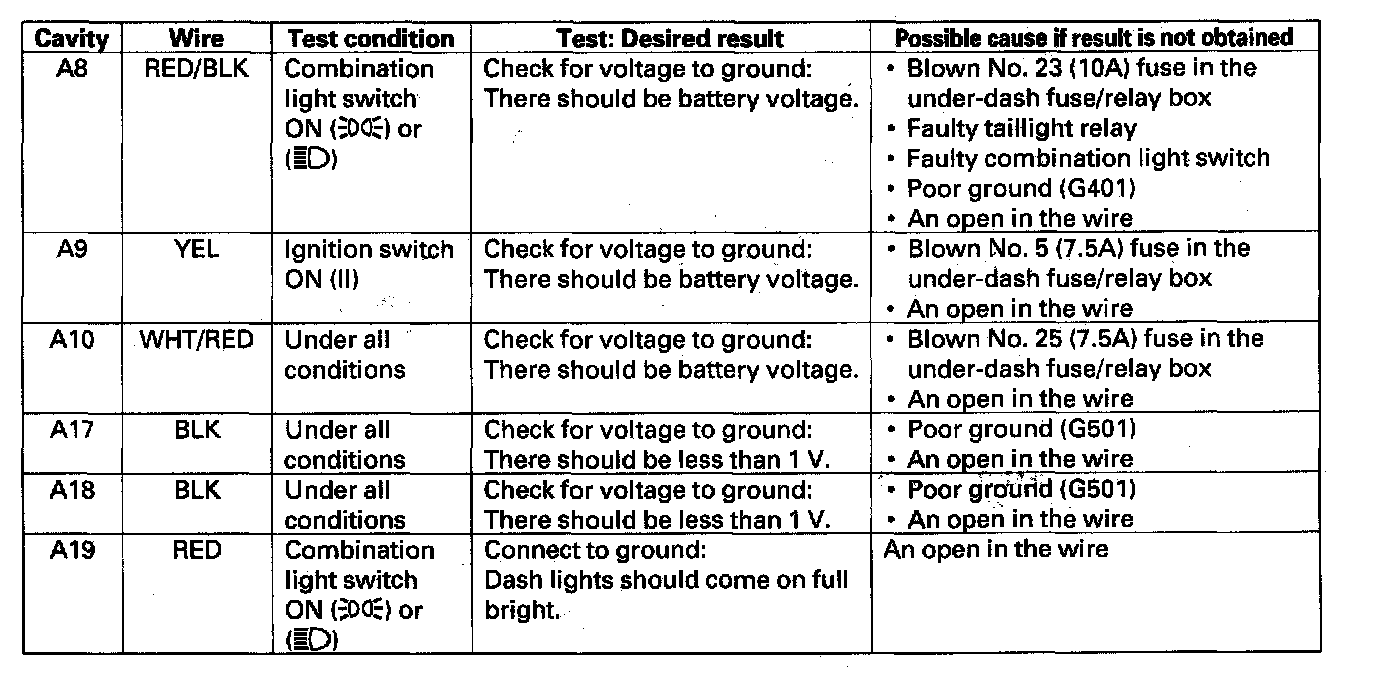 4. Back probe the connector and make these input tests.
