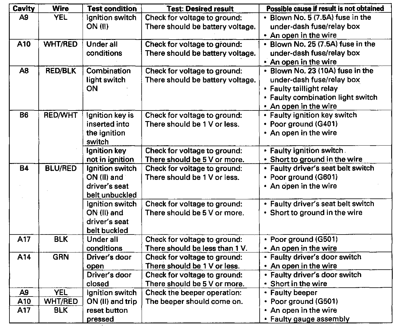 Instrument Panel, Gauges and Warning Indicators: Testing and Inspection